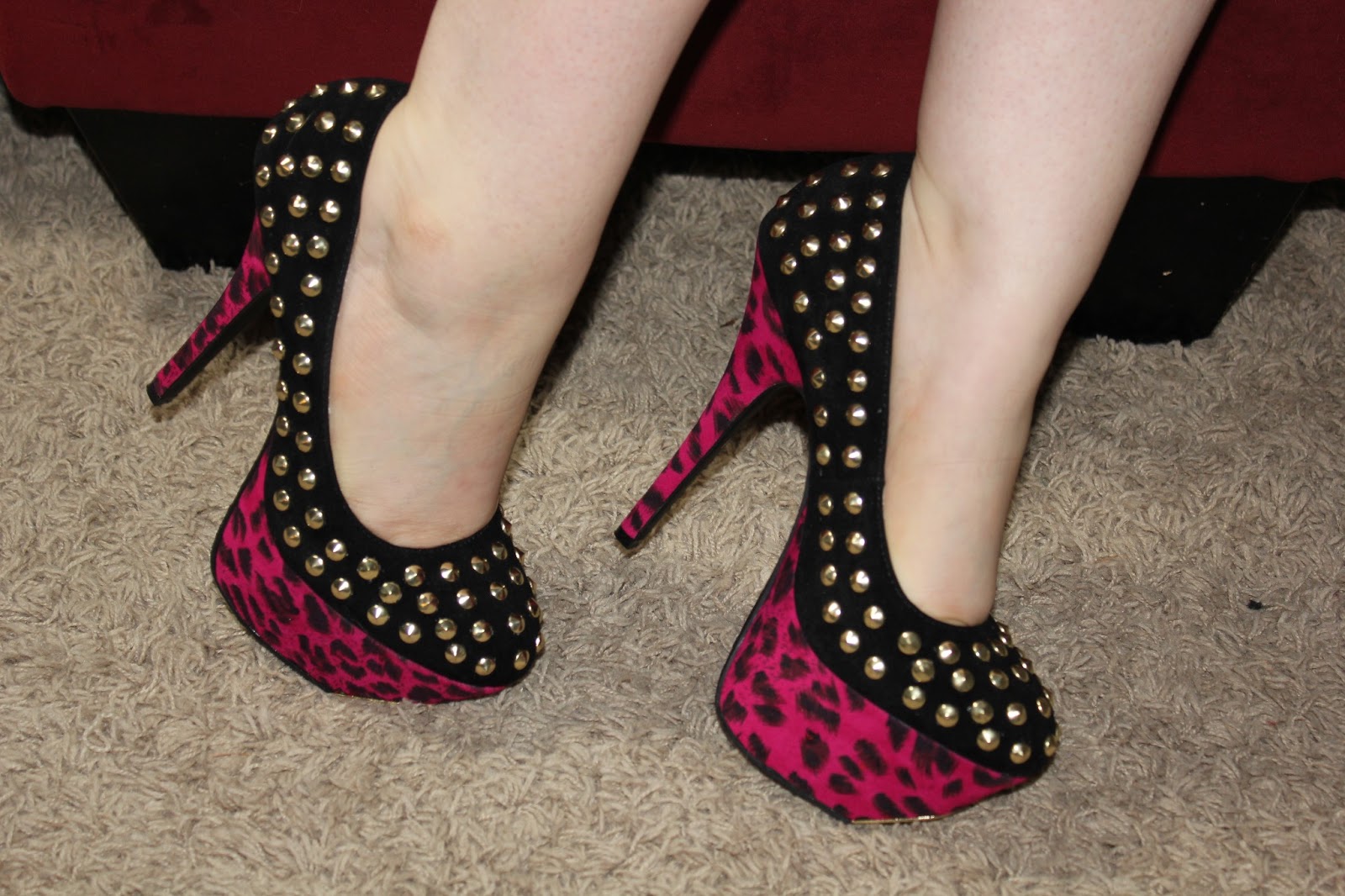 My final pair is these Chloe- Black/Fuchsia Leopard heels. When I saw them I thought "RAWR!" I don't normally like animal print unless they are fun colors. When I saw that these were a purple leopard, I fell in love.